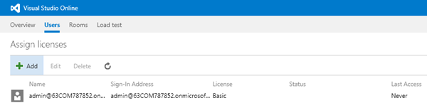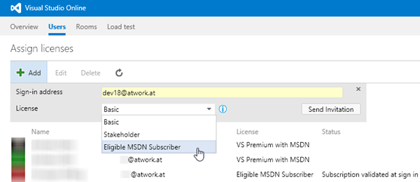 Wenn ein Benutzer eine MSDN Lizenz besitzt wie in unserem Beispiel oben, muss er mit demselben Login in VS Online hinzugefügt werden, das auch für die MSDN-Lizenz verwendet wird. Wenn dem so ist, gilt die MSDN-Lizenz als VS Online Lizenz.
