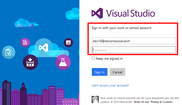 Ergo: Organisations-Konten können in Visual Studio Online, welche mit einem Microsoft-Konto erstellt wurden, also nicht verwendet werden.