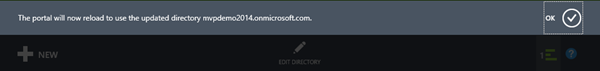Nach der Bestätigung muss das Azure Portal neu geladen werden: OK.