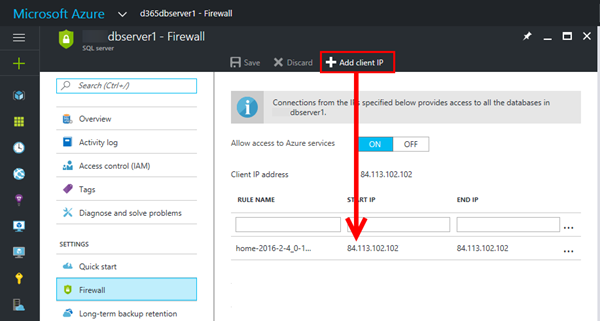 First of all, allow the connection with TCP port 1433 to your client IP address in the Azure portal at https://portal.azure.com. Click “Add client IP” and add it to the firewall settings of the SQL server as in this sample here.