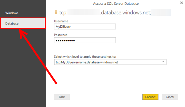Ok, let’s assume you have a valid username and password for the database and the Azure firewall allows the connection. You can try the connection with SQL Management Studio (or any other client) as well to ensure the connection works.