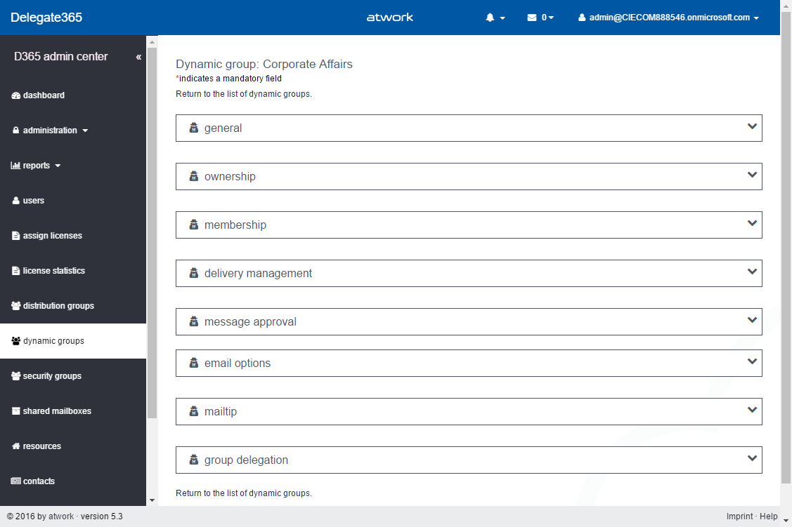 Info: The group name can be renamed afterwards to enable Admins to be flexible with the naming conventions. Group renaming is also a new feature of D365 version 5.2.