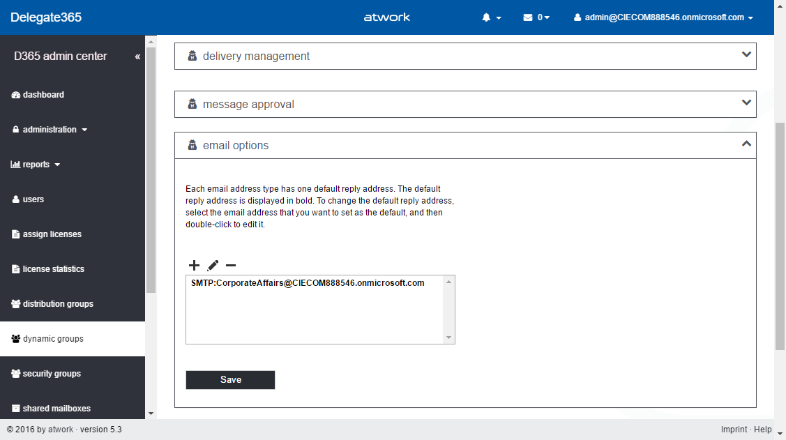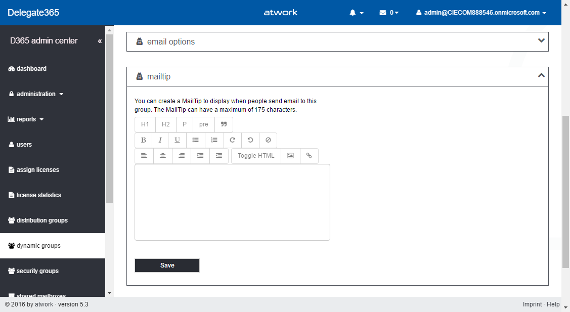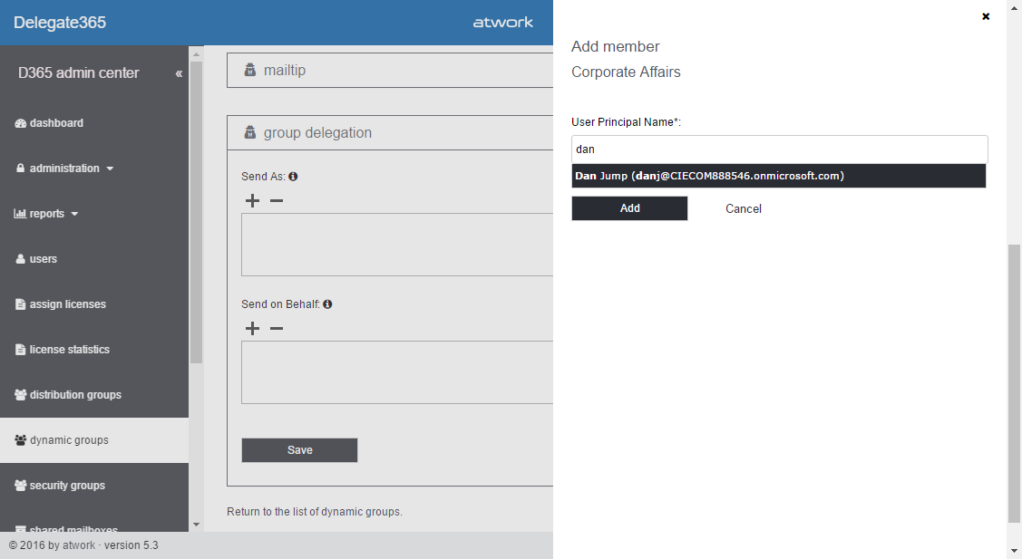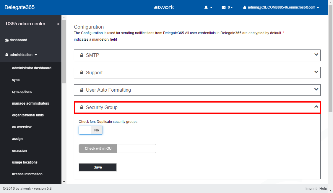 We kindly ask all customers who have not updated to version 5.2 yet to make a remote appointment with atwork to plan the update. You can see the current D365 version in the footer line in the D365 portal. All new D365 customers and all trials are automatically receiving the newest version of Delegate365.