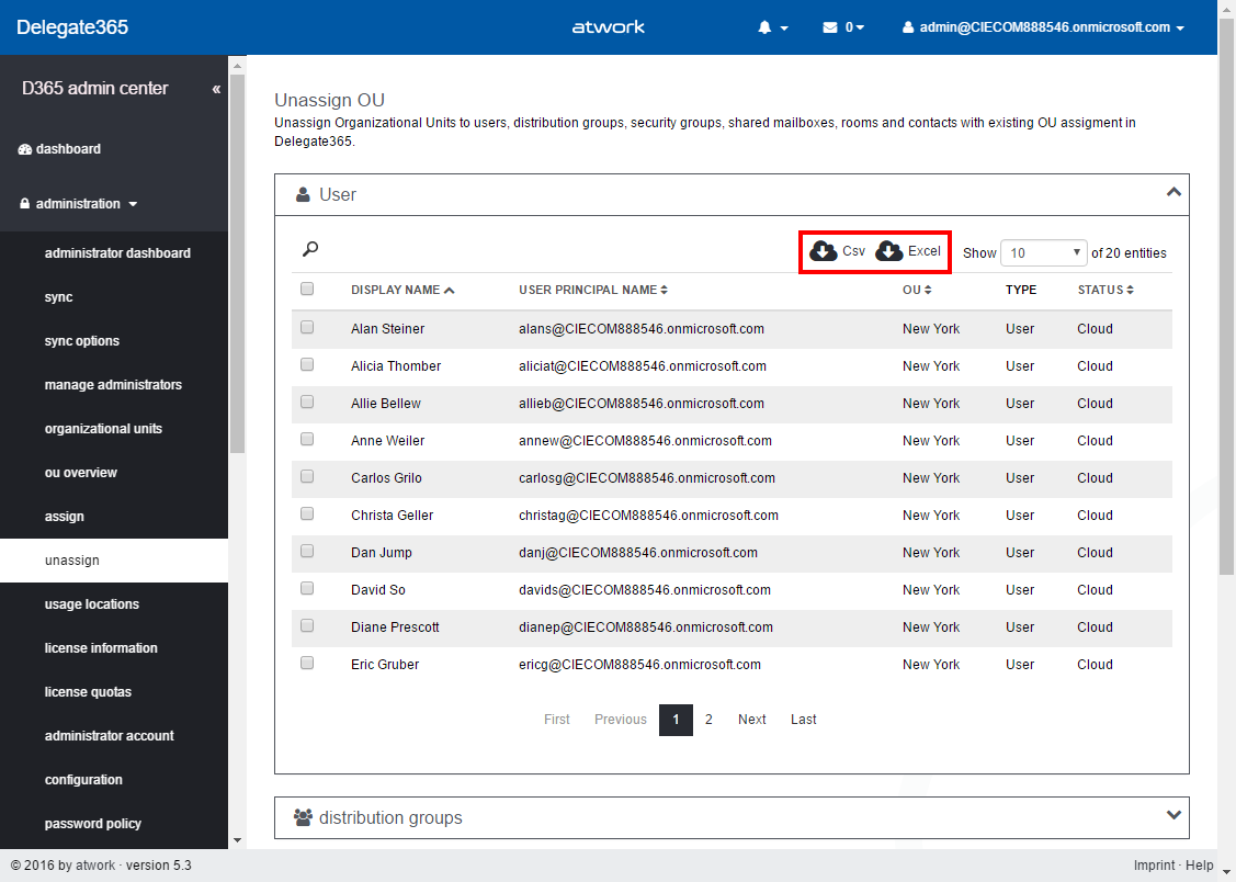- Unassign: In administration / unassign the CSV and Excel file export was extended.