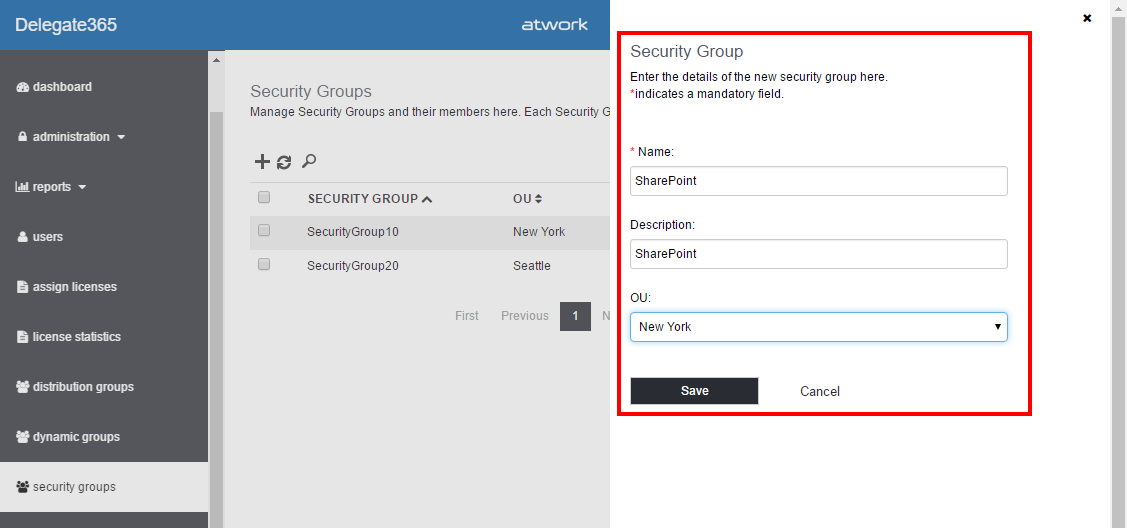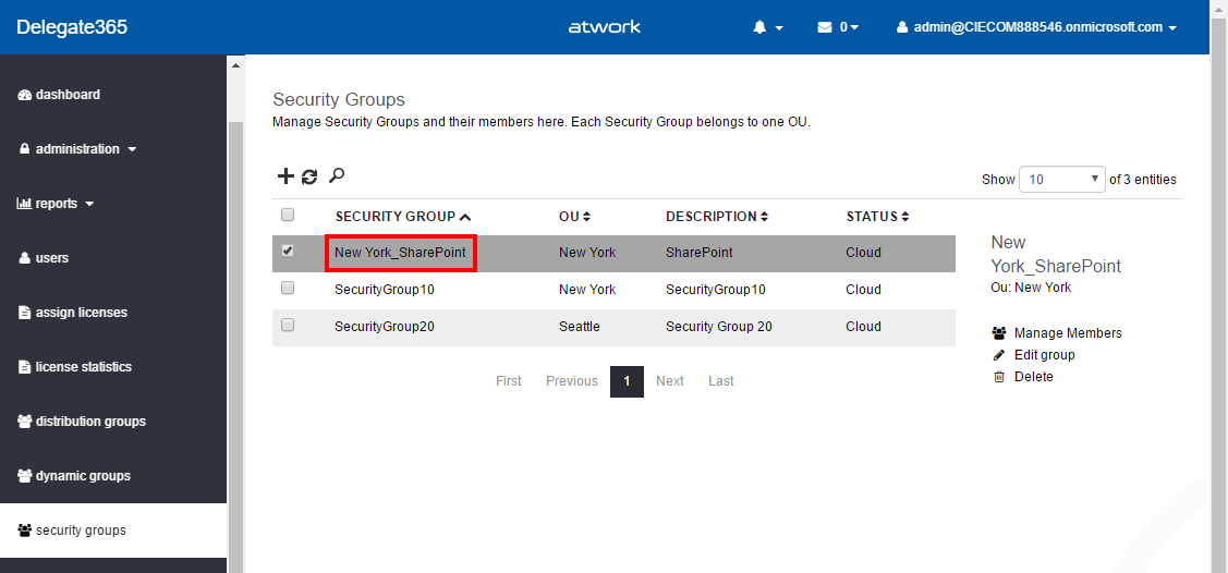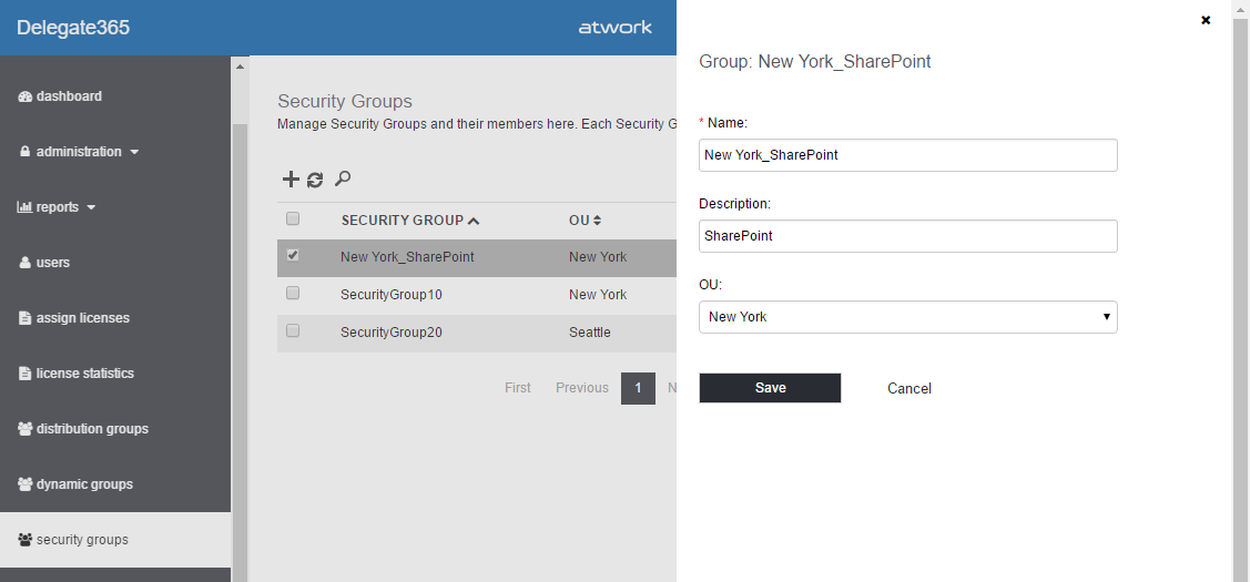 So if we now create a new security group “SharePoint” in OU “New York”…
