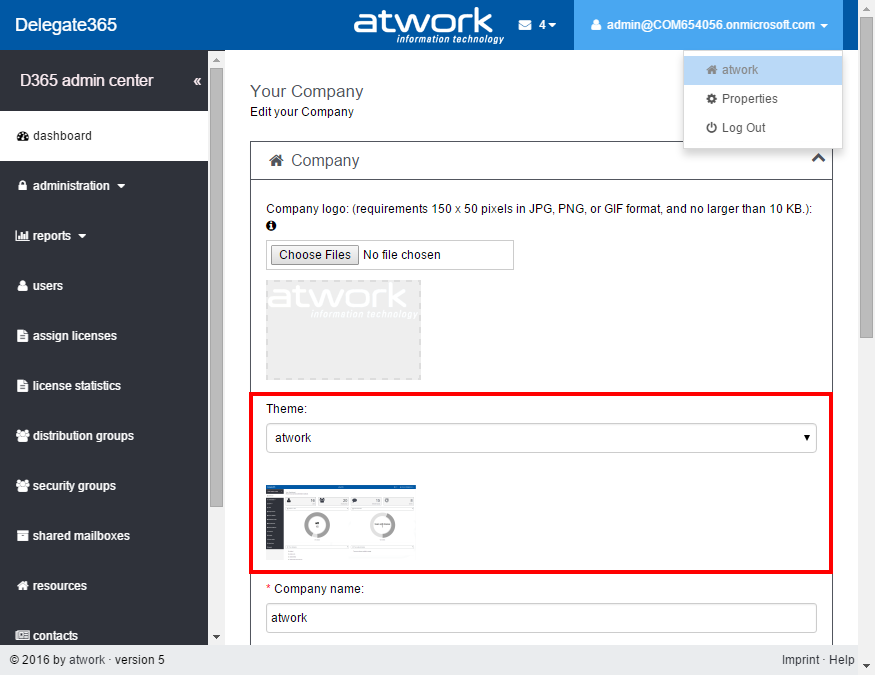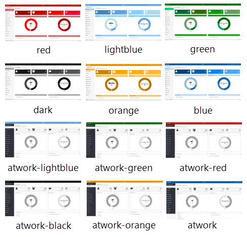 Admins now can choose between 12 themes. “atwork” is the default theme which now appears in the new color scheme dark grey and blue (as shown in the screenshot above).