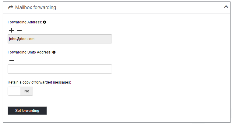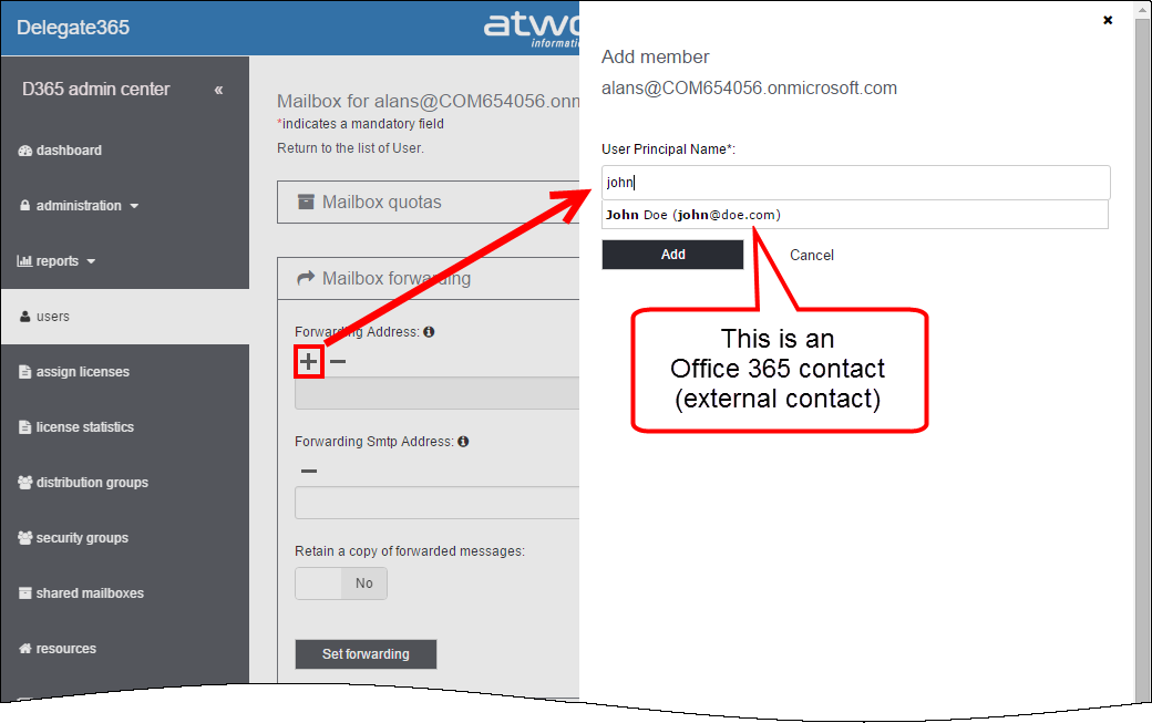 Forwarding a user mailbox or a shared mailbox to Contacts: Contacts now can be used for forwarding a user’s mailbox and a shared mailbox as well. This can be done with the member picker.