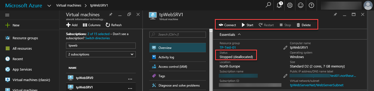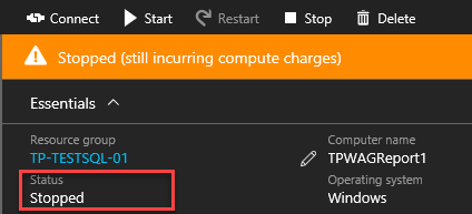 But, after some minutes the VM will be stopped. It’s nice that the Azure RM portal informs, that Status “stopped” is NOT identical with “deallocated”: