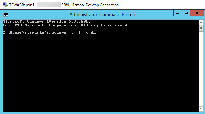 If you shutdown a VM, use cmd and shutdown –s –f –t 0