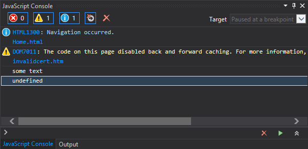 Now every output written to console.log(‘some text’); will show up in the output window.