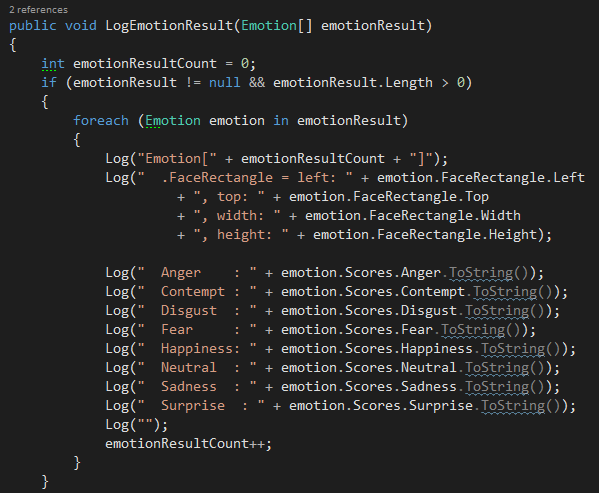 …und die Ausgabe dieses Szenarios aus dem Beispiel durch Durchlaufen der emotionResult-Collection.