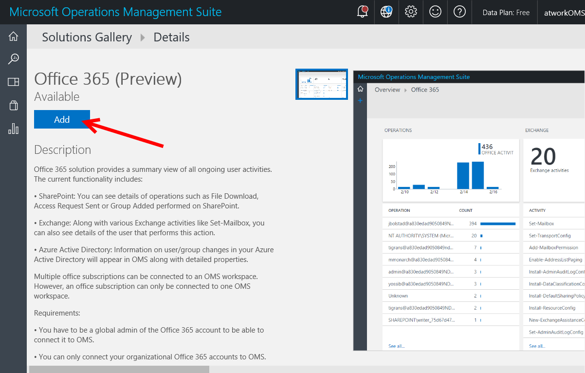 Currently, the Office 365 solution is in Preview. Then add the solution.
