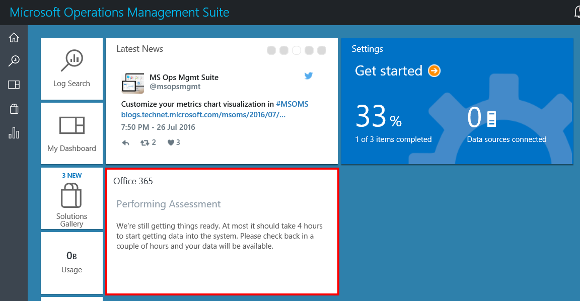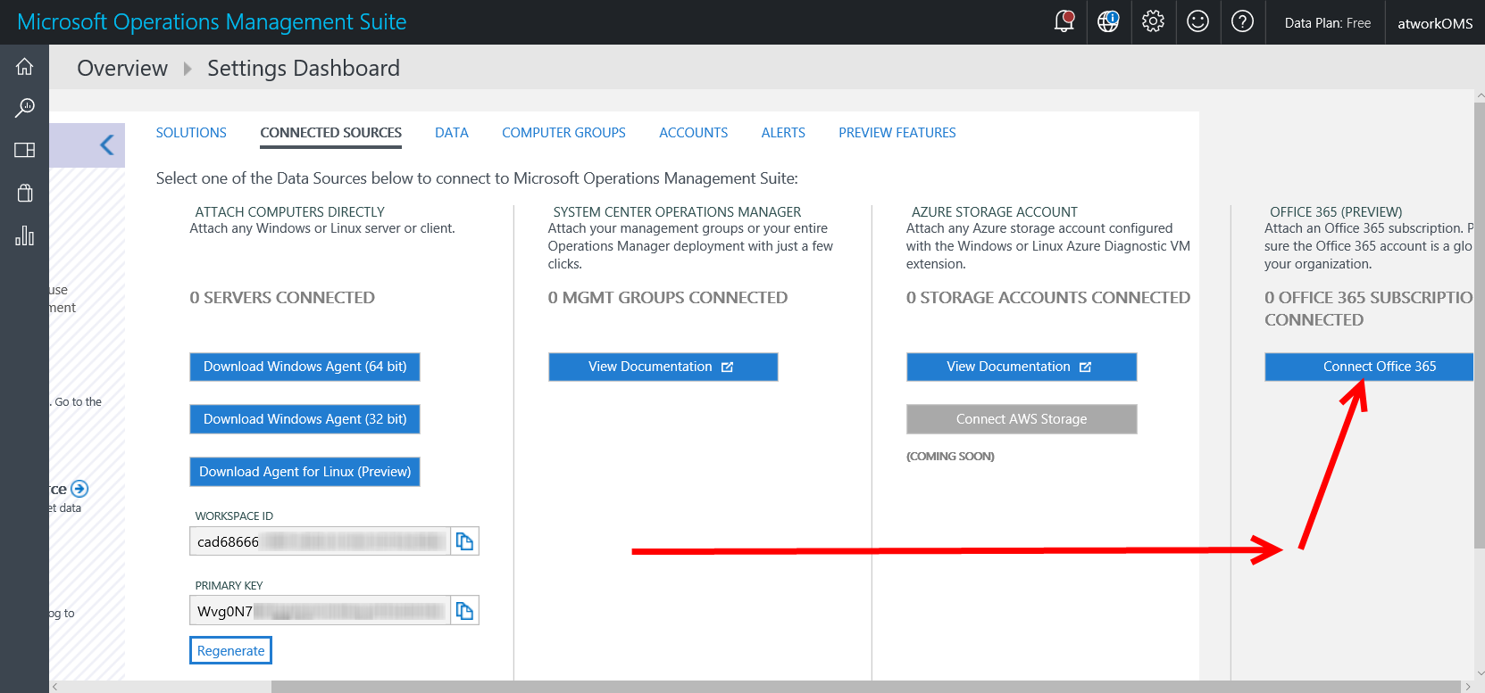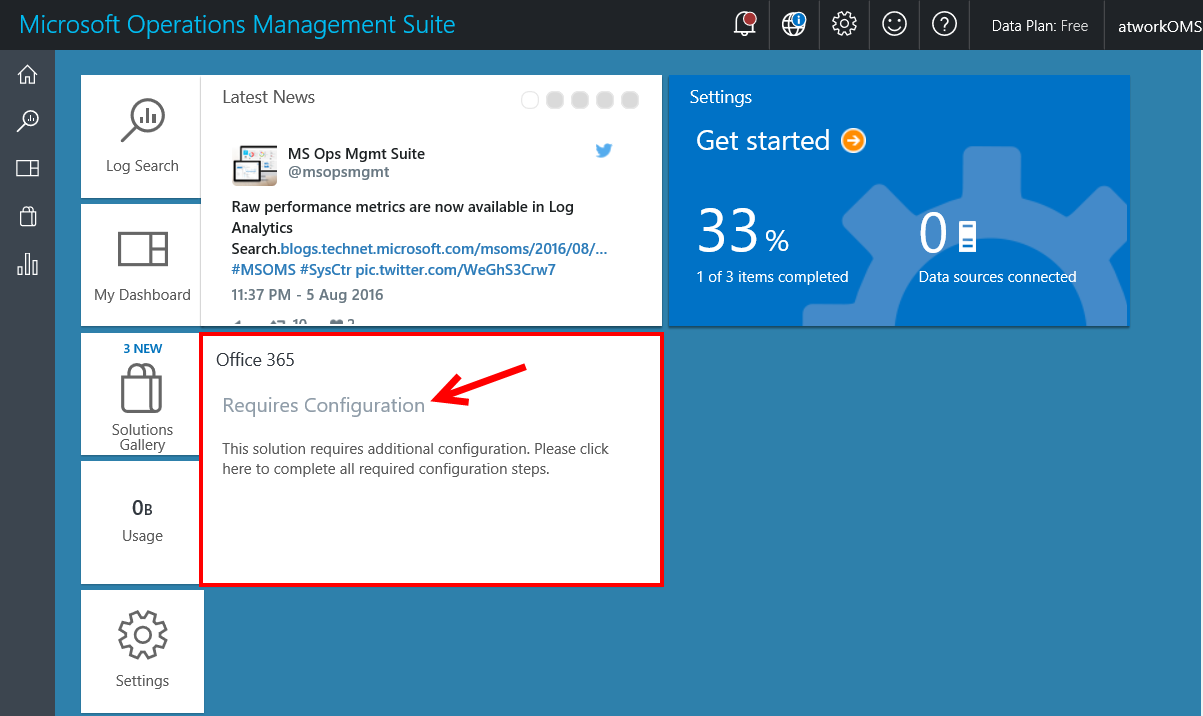 Finally, we need to bind an Office 365 tenant to the OMS workspace: