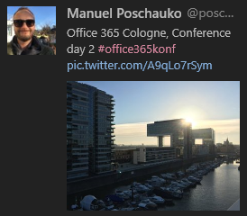 Last week the second Office 365 Konferenz (office365conferenz.net) took place from 8th to 9th of January 2016 in Cologne. With about 120 attendees the event was fully booked (again).