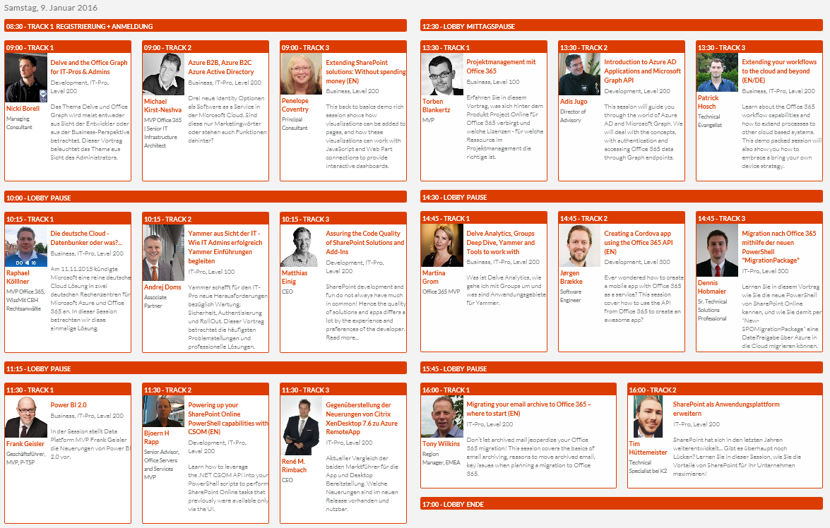 There were a lot of emails, virtual Meetings and Calls necessary for organizing this event. Internally we used OneNote, SharePoint Online and mostly a closed Yammer group in the german speaking MVP Yammer Network to coordinate.