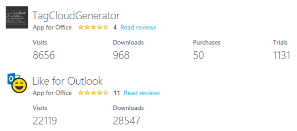 Nice numbers of our two Office-AddIns “TagCloud Generator” and “Like for Outlook”.