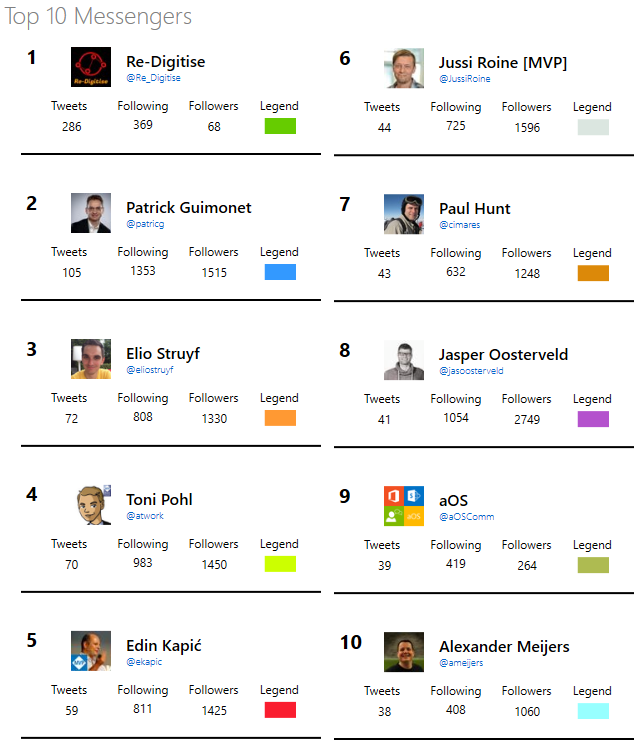 Well, some of the messages of the Top 10 messengers were Retweets (so let’s skip @Re-Digitise…):