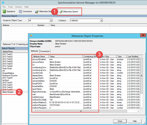 Falls es also mal Probleme bei einzelnen Usern gibt und die Synchronisation muss man sich immer ansehen ob der User ins Metaverse kommt, ob er dort alle Attribute hat und natürlich auch die Synchronization Rules kennen. Hat man diese einmal verstanden, ist es ein leichtes zu erkennen warum ein User nicht gesynct wird oder sehr wesentliche Attribute einfach fehlen.