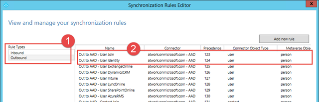Hier finden sich die Synchronzation Rules. Diese zeigen uns, was mit welchen Parametern synchronisiert wird. Nachdem unser User zwar hinein in unser MetaVerse kommt, ist der Teil “inbound” für uns uninteressant. Spannend ist Outbound.