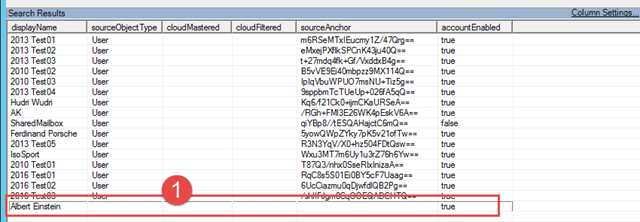Also.. machen wir einfach mal eine 1 aus den Details und.. Voila – beim nächsten Anstossen per DirSyncClientCmd.exe und einem Delta Sync wird der SourceAnchor befüllt und unser User ab sofort korrekt synchronisiert.