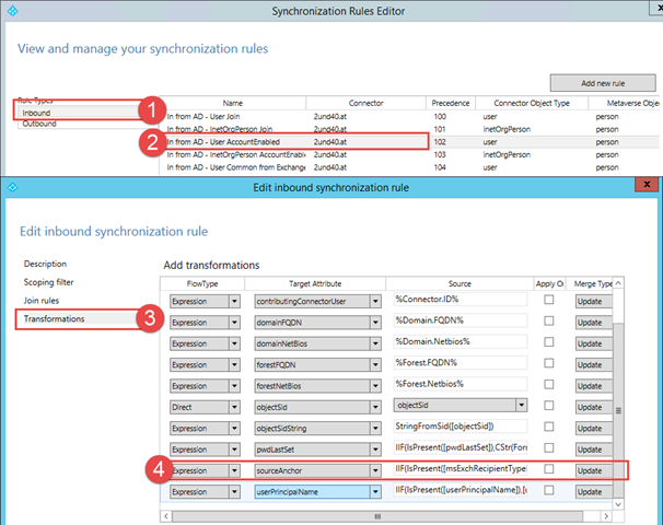 Simples Beispiel: Ist der User nicht enabled, dann wird das “AccountEnabled” Attribute entsprechend geändert. Ist das beim User leer, kann ich den User nicht synchronisieren. Ebenso wenn es sich nicht um User handelt und / oder das CloudMastered Attribute auf TRUE steht. Damit wird zum Beispiel User Write Back realisiert, aber dazu später mal mehr.