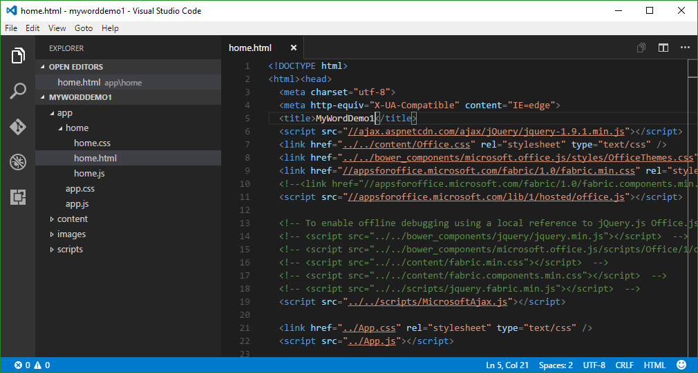 In meinem Beispiel wollte ich ein Office-AddIn für Word bauen und mit VSC bearbeiten. Das Framework habe ich übrigens in Node.js mit