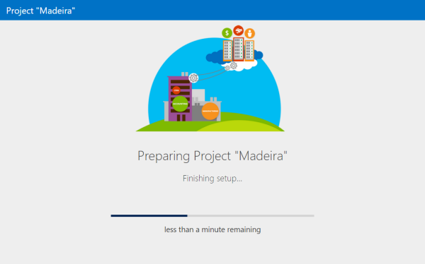 Zuerst erfolgt die Teilnahme an der Preview unter https://madeira.microsoft.com/ mit einem Office 365 Account. Nun wird Project Madeira provisioniert, dies dauert ein paar Minuten.