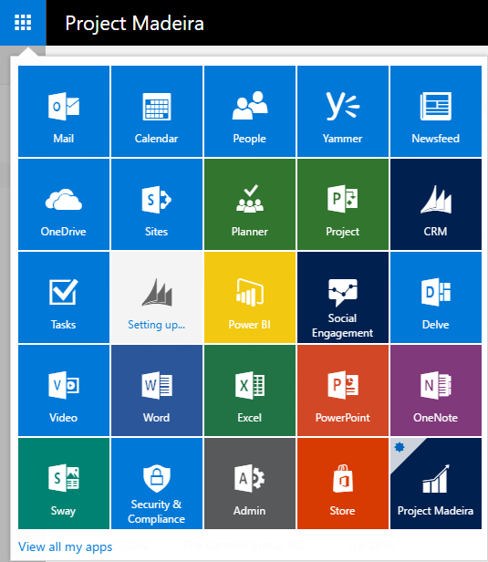 Wie erwartet, integriert sich Project Madeira gleich in den Office 365 App Launcher.