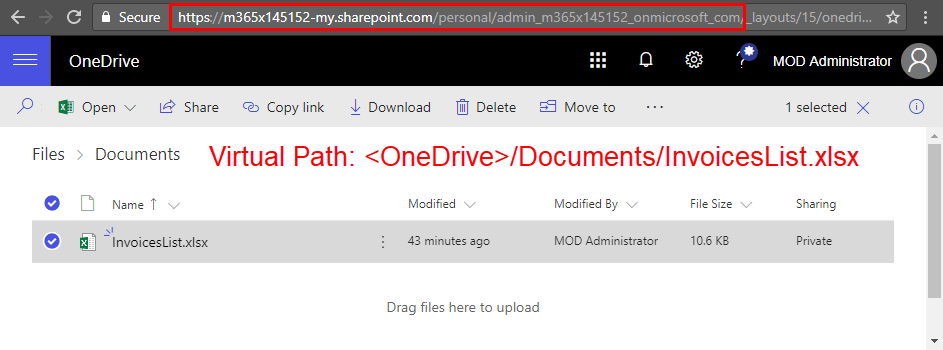 So, the virtual path is my personal [OneDrive]/Documents/InvoiceList.xlsx.