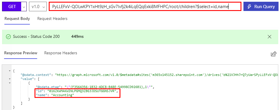 https://graph.microsoft.com/v1.0/sites/m365x145152.sharepoint.com/drives/b!vjhh7rq7yuarspyllefxv-qolwkpy1xht9zh_sgv7ivfj2k4ilqeqqexki8mfhpc/items/016zkwmakwinlpgmq3zbg3jdsutggnsjvr/children?$select=id,name
