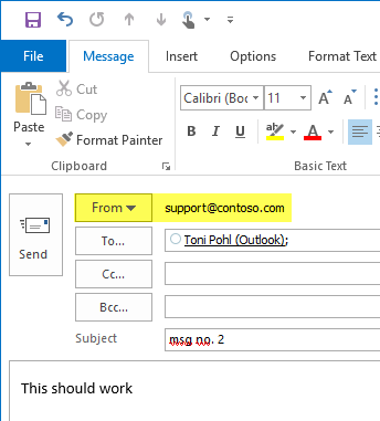 That’s it. Now it’s time to retry… another email is sent FROM the “support@contoso.com” Group: