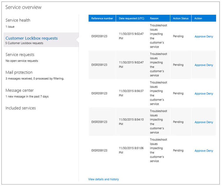 - Mit Customer Lockbox erhalten Sie als Kunde in Ihrem Administrationsportal nun eine Anfrage und können diese noch einmal prüfen und erlauben oder verweigern. Erst danach kann der Supportmitarbeiter für einen bestimmten Zeitraum (z.B. 30 Minuten) zugreifen.