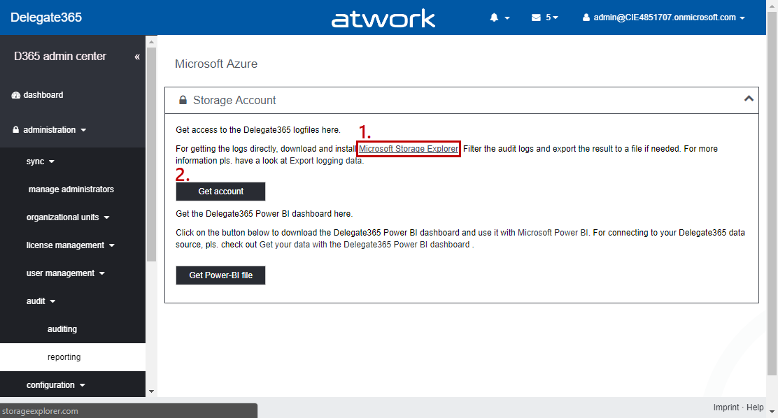 Now it depends, how you want to use the Delegate365 audit logs: You can download the data with a tool like Microsoft Storage Explorer, or you can access the data directly with Excel, Power BI or other tools.