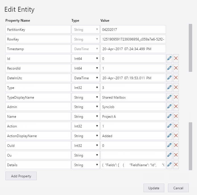 { "FieldName": "Identity", "CurrentValue": "projecta", "OldValueIfAny": "" },