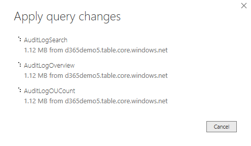 Now data should be transferred from the Delegate365 storage to the Power BI client. Depending on the log size, this can take some seconds or longer…
