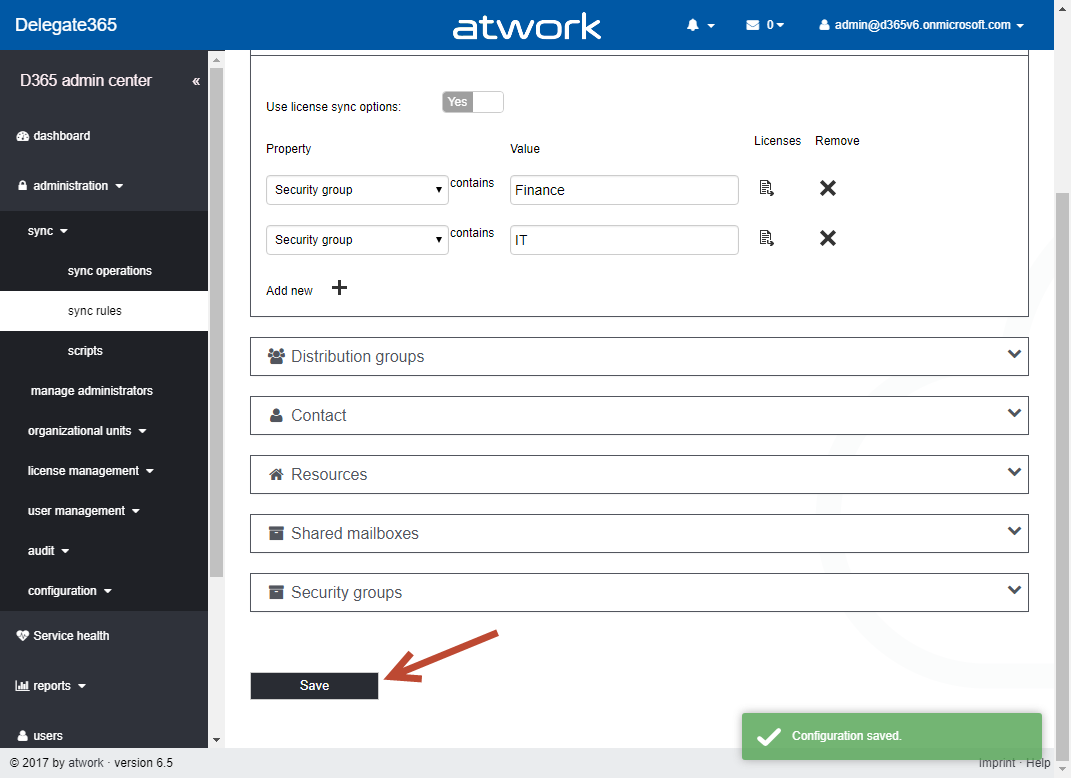 Ok. Don’t forget to Save the sync rules at the bottom of the page.