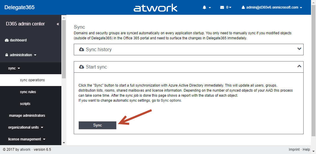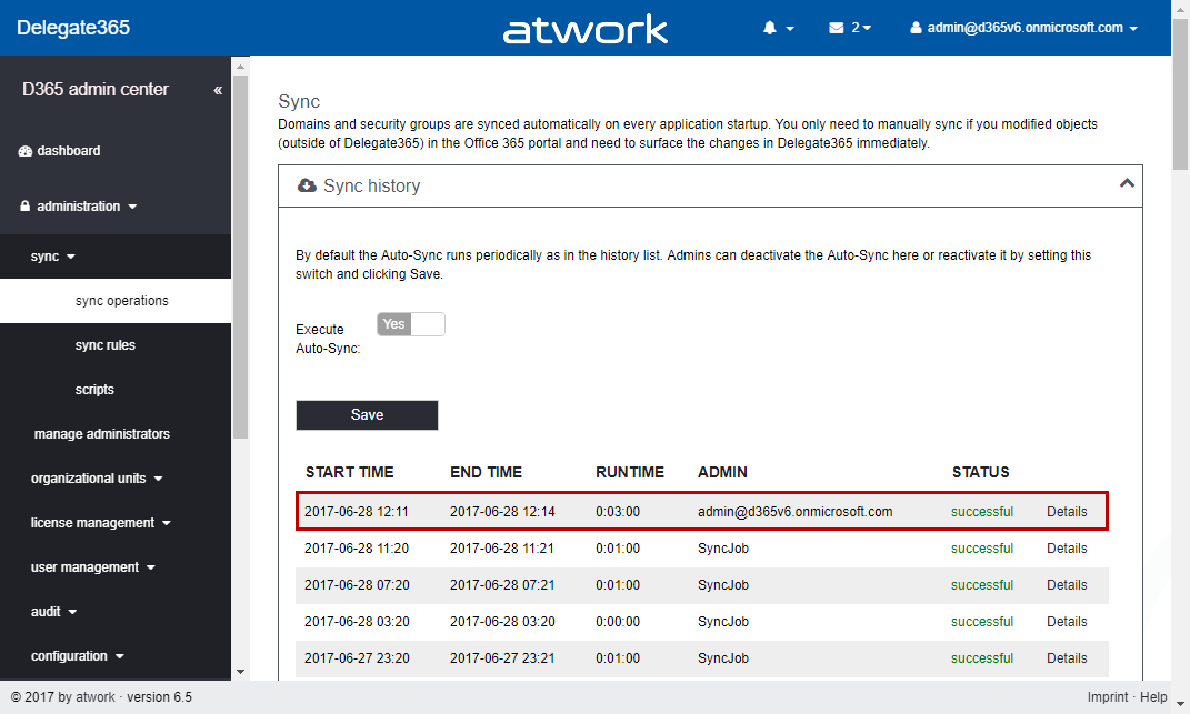 After the SyncOp has finished, you can check the result in the same page in the Sync history box. Here we see the manual triggered SyncOp.