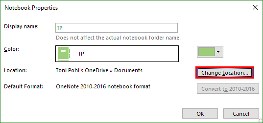 So I wanted to move the “TP” notebook. in the following dialogue, we are able to “Change Location…” of the selected notebook. Easy as that!