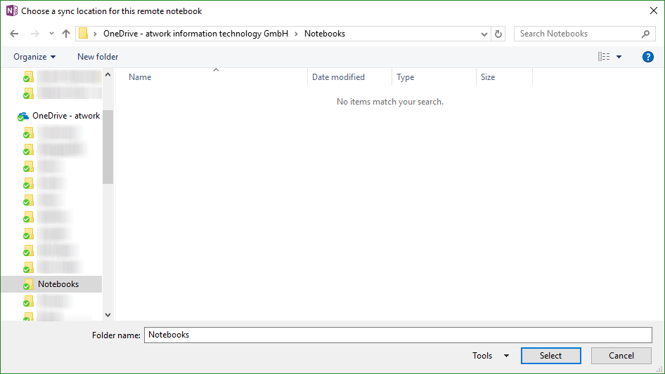 Now we can select the desired path. I wanted to have that notebook stored in my ODB as follows: