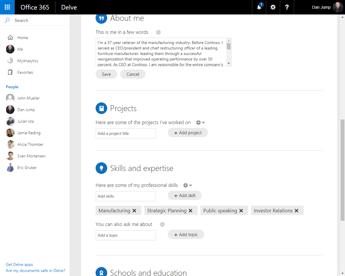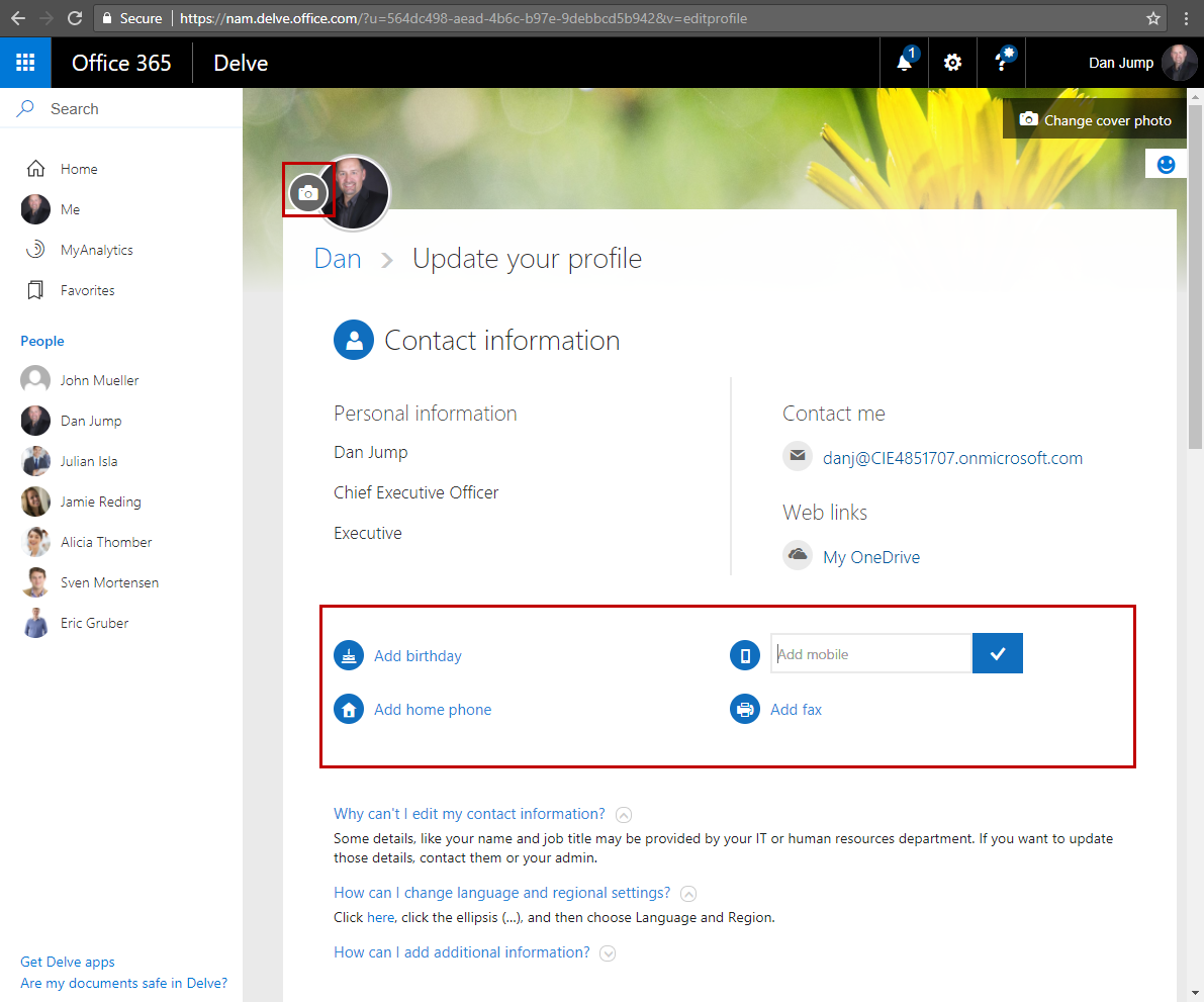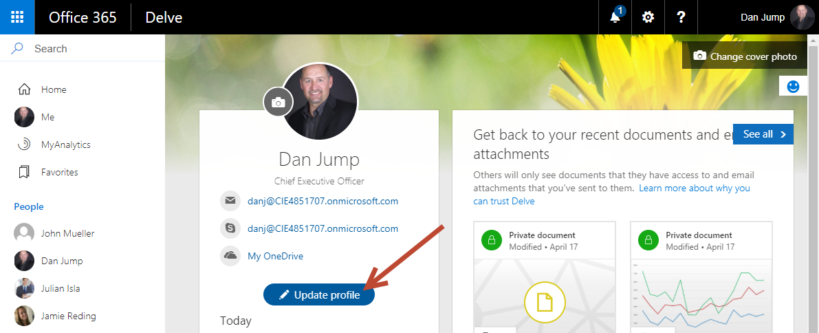 Now, in the Delve site, click Update profile.