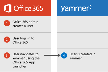 The user creation is done when the users first opens Yammer.
