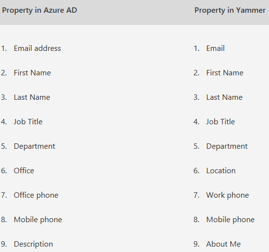 Azure AD updates the following Yammer properties (see details here):