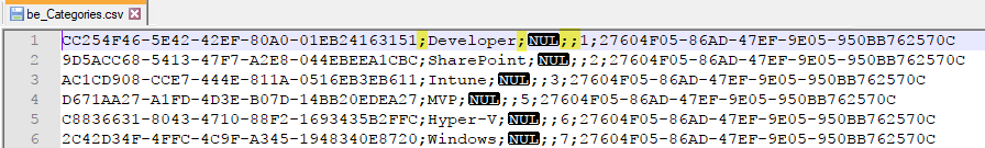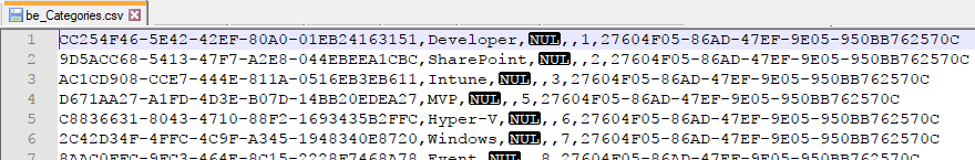 bcp atworkblog.dbo.be_Categories out c:\temp\be_Categories.csv -f c:\temp\be_Categoriesformat.xml –S …