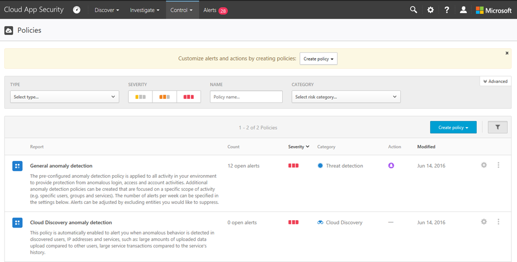Sie sehen also, dass Office 365 Advanced Security Management hilft, die Sicherheit innerhalb Ihres Office 365 Tenants zu erhöhen.