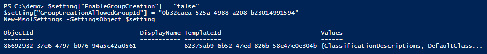 $setting["GroupCreationAllowedGroupId"] = "0b32caea-525a-4988-a208-b23014991594"