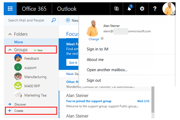 Now login with another user who is not member of the “GroupAdmins” groups. Here, we use Dan (danj). As we see, that user is not able to create a new group in Outlook – the policy works.