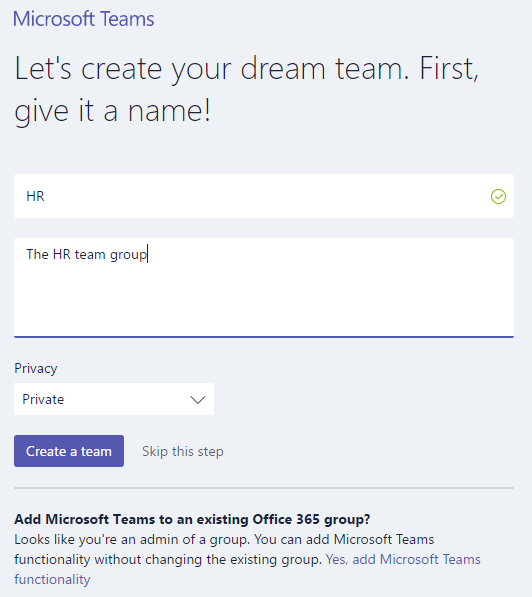 Ok, here we go. The team “HR” has been created and can be used instantly.
