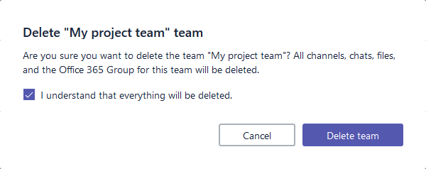 So, take care not to delete a team site if you are not sure. The underlying group is deleted.