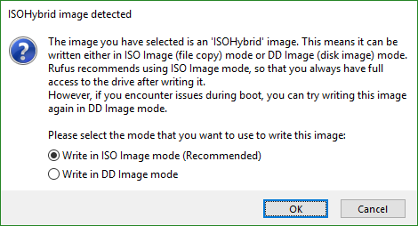 First, I download the ISO file from downloads.raspberrypi.org/pixel_x86. I did a short research how to get the ISO image in bootable form on an USB drive and found Rufus to be a fast and easy way. Actually I don’t like to install any unknown, not trusted software on my computer, but curiosity beats security… (don’t tell my IT Admins ;). So I downloaded Rufus (the portable version) and executed it.