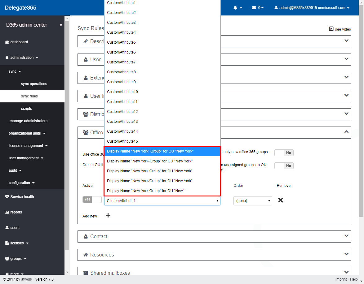 That’s the purpose, to use a Display Name for automatic OU-assignment instead of object properties. Now, admins can use this feature additionally if needed for the following objects: Distribution Groups, Office 365 Groups, Contacts, Resources, Shared Mailboxes and Security Groups as marked red in the following screenshot.